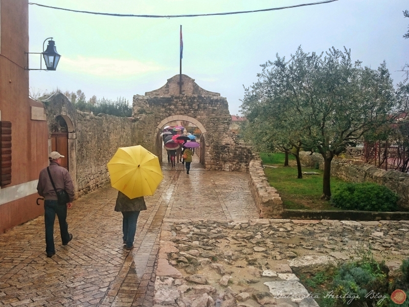 The gate into town is part of the medieval fortifications which were constructed on top of the Roman walls, which were in turn built on the Liburnian walls. Here on our picture we can see the gates and the surrounding wall from ancient times.